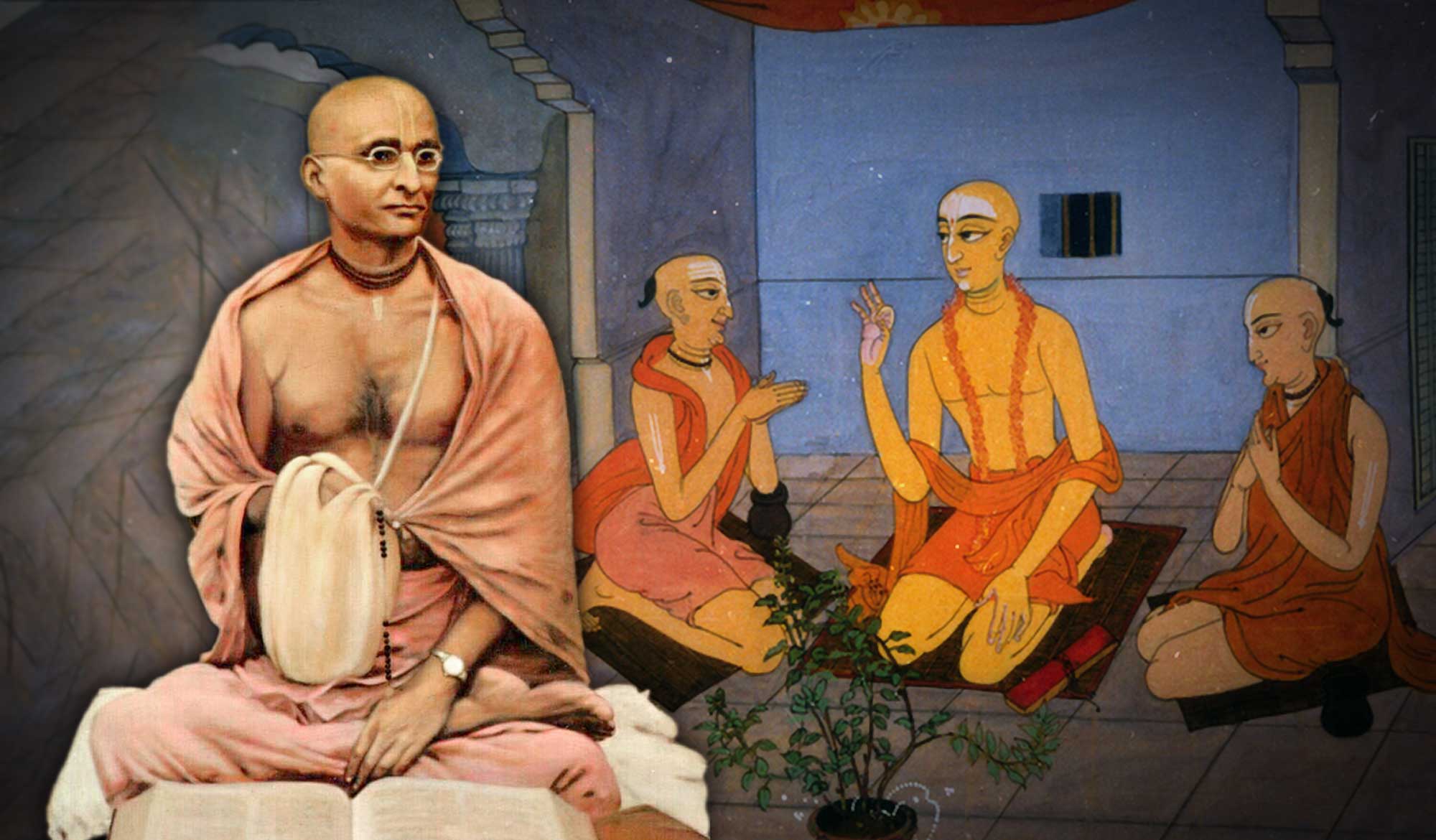 The conception of the transcendental devotee of Hari is not contemptible like that. He knows that Hari alone is the Supreme Truth. When the devotee of Hari identifies himself as being averse to Him, then his realisation of Hari, the Absolute Truth, diminishes. This misconception of adversity creates a false identity within him and attacks his inner tendency and inherent inclination – then false things are considered to be true. Such a servant of Hari, considering partial knowledge to be truth, turns away from hari-darśana and perceives the Paramātmā. Then he considers the manifestation of Paramātmā to be the truth. Again, when he has darśana of only the initial spiritual stage of He who possesses qualities, he becomes a knower of Brahman, which is considered by him to be the ultimate Object. Again, due to a similar lack of knowledge, from the external point of view, he goes to experience the truth in Devi-dhāma and, under the shelter of vivartavāda* he considers the body created by māyā’s modes to be the self.