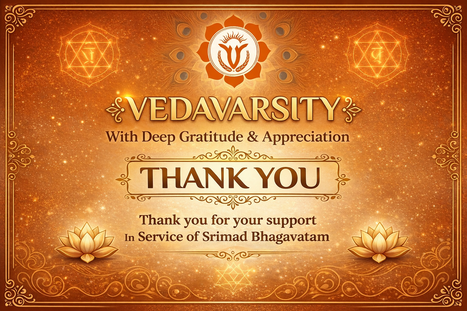 If Vedavarsity has supported your learning or strengthened your connection with Śrīmad-Bhāgavatam and other śāstras, we humbly invite you to participate in this spirit of dakṣiṇā by offering according to your capacity and inspiration. Even a small offering, when given with sincerity, becomes meaningful seva.
