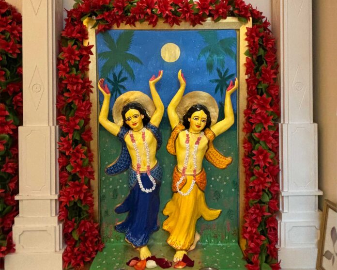 3) Lord Gaura says, “Hari! Hari!” a female parrot responds, “Hari! Hari!” and then all male and female parrots start singing a loud chorus of the name of Hari.