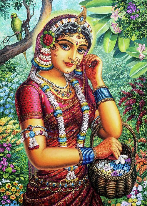 5) “I worship Sri Radhika, Whose heart is sprinkled by pure intimate affection for Lalita, Whose all-round mood of friendship for Visakha is well known, Who is a box filled with priceless jewels of love for Krsna and Who is sweetly playful.”