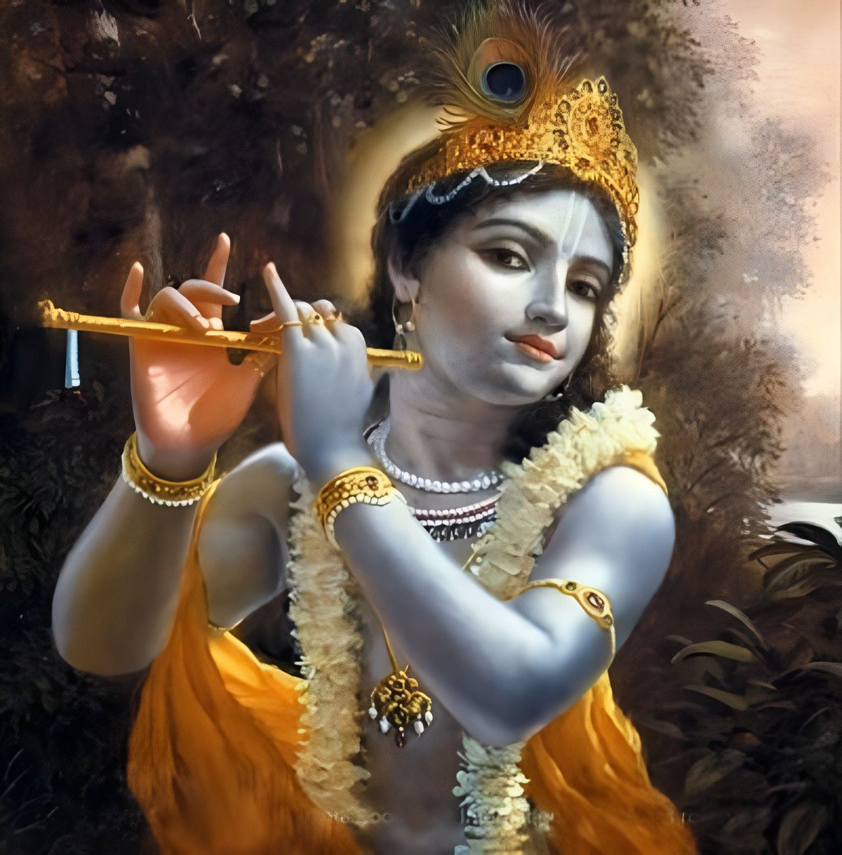 1) Upon singing the holy name of Govinda, a host of ecstasies arose within me… and I saw Lord Syamasundara, the best of dancing actors, standing on the banks of the Yamuna in the company of the daughter of Maharaja Vrsabhanu. He was playing His flute with great delight at the base of a kadamba tree.