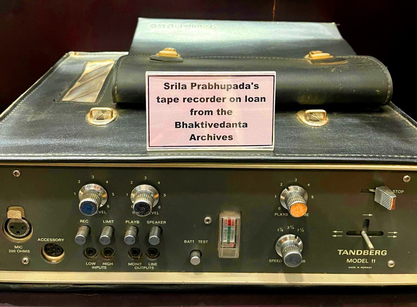 One of the two original tape recorders used by Srila Prabhupada, on loan from the Bhaktivedanta Archives for the museum display.