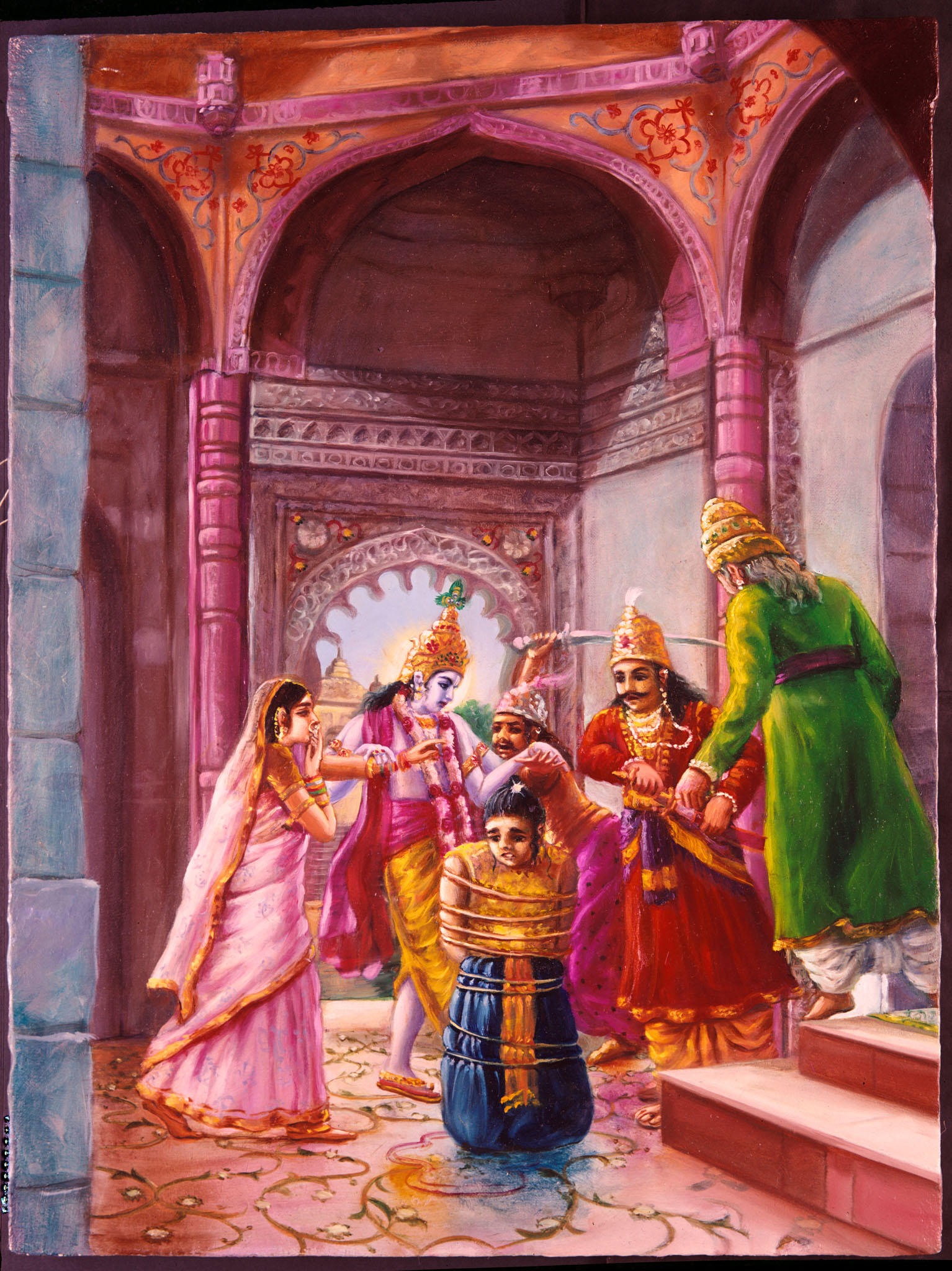 Draupadī, the mother of the five children of the Pāṇḍavas, after hearing of the massacre of her sons, began to cry in distress with eyes full of tears. Trying to pacify her in her great loss, Arjuna spoke to her thus (15).