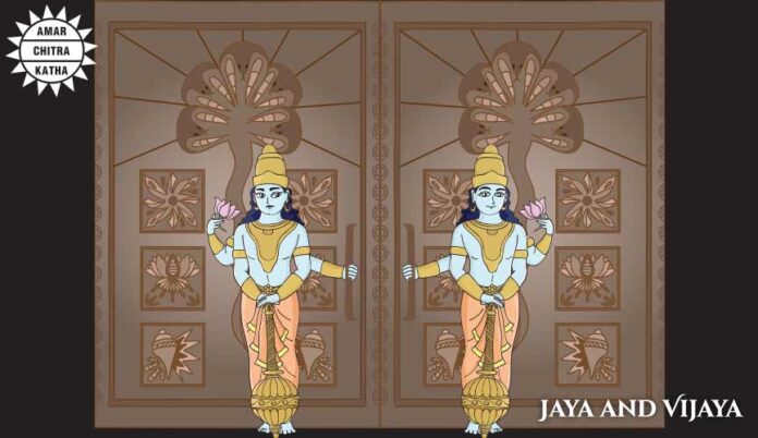 The Lord assured the two Vaikuṇṭha inhabitants, Jaya and Vijaya: By practicing the mystic yoga system in anger, you will be cleansed of the sin of disobeying the brāhmaṇas and within a very short time return to Me (31).After thus speaking at the door of Vaikuṇṭha, the Lord returned to His abode, where there are many celestial airplanes and all-surpassing wealth and splendor (32).But those two gatekeepers, the best of the demi gods, their beauty and luster diminished by the curse of the brāhmaṇas, became morose and fell from Vaikuṇṭha, the abode of the Supreme Lord (33).