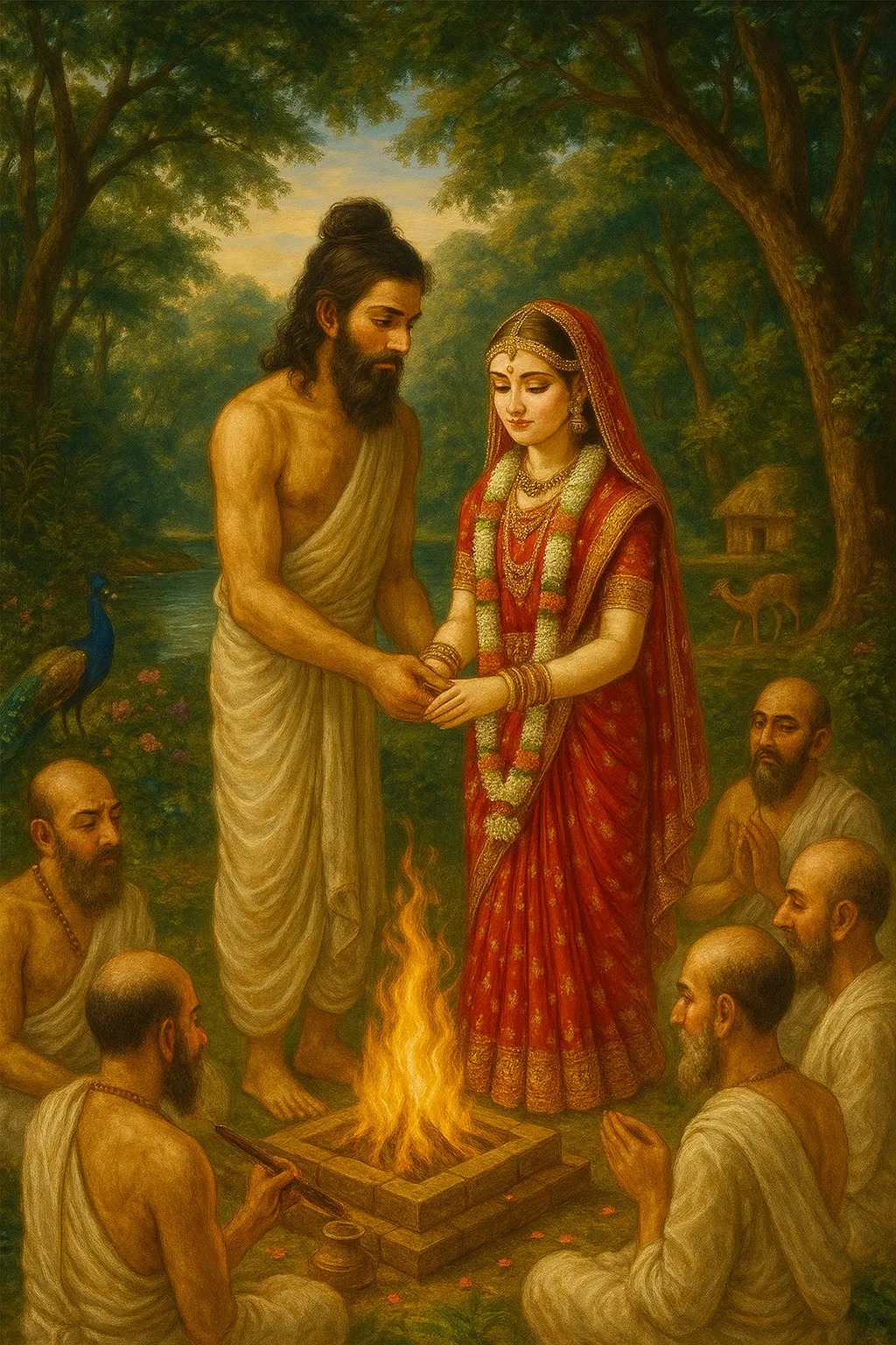 To deny an offering that has come of itself is not commendable even for one abso lutely free from all attachment, much less one addicted to sensual pleasure (12).One who re jects an offering that comes of its own accord but later begs a boon from a miser thus loses his widespread reputation, and his pride is hum bled by the neglectful behavior of others (13). Svāyambhuva Manu continued: O wise man, I heard that you were prepared to marry. Please accept her hand, which is being offered to you by me, since you have not taken a vow of per petual celibacy (14). The great sage replied: Certainly I have a desire to marry, and your daughter has not yet married or given her word to anyone. Therefore our marriage according to the Vedic system can take place (15).