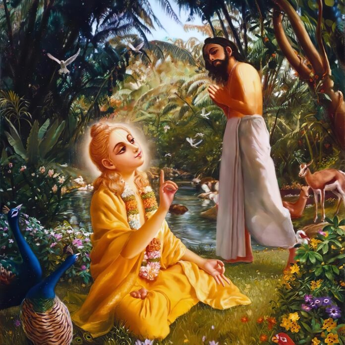 Śrī Sūta Gosvāmī said: The most powerful sage Maitreya was a friend of Vyāsadeva. Be ing encouraged and pleased by Vidura’s in quiry about transcendental knowledge, Mait reya spoke as follows (4). Maitreya said: When Kardama left for the forest, Lord Kapila stayed on the strand of the Bindu-sarovara to please His mother, Devahūti (5).When Kapila, who could show her the ulti mate goal of the Absolute Truth, was sitting lei surely before her, Devahūti remembered the words Brahmā had spoken to her, and she therefore began to question Kapila as follows (6).