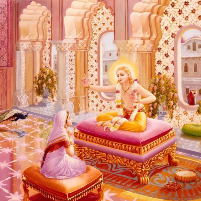 Devahūti inquired: My dear Lord, You have already very scientifically described the symptoms of the total material nature and the characteristics of the spirit according to the Sāṅkhya system of philosophy. Now I shall re quest You to explain the path of devotional ser vice, which is the ultimate end of all philosoph ical systems (1-2).Devahūti continued: My dear Lord, please also describe in detail, both for me and for people in general, the continual process of birth and death, for by hearing of such calamities we may become detached from the activities of this material world (3).