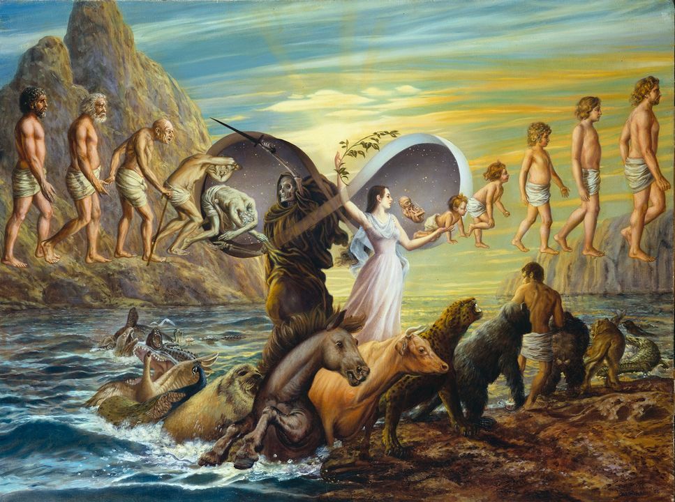 Laid down on a foul bed in fested with sweat and germs, the poor child is incapable of scratching his body to get relief from his itching sensation, to say nothing of sit ting up, standing or even moving (26). In his helpless condition, gnats, mosquitoes, bugs and other germs bite the baby, whose skin is tender, just as smaller worms bite a big worm. The child, deprived of his wisdom, cries bitterly (27). In this way, the child passes through his childhood, suffering different kinds of distress, and attains boyhood. In boyhood also he suffers pain over desires to get things he can never achieve. And thus, due to ignorance, he be comes angry and sorry (28).