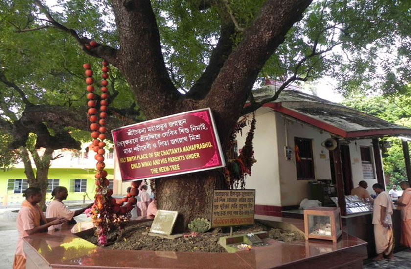 Here under a neem tree, baby Nimāī took birth from the womb of Mother Śacī. The original tree has since departed from this world, and a new tree has grown in the same place.