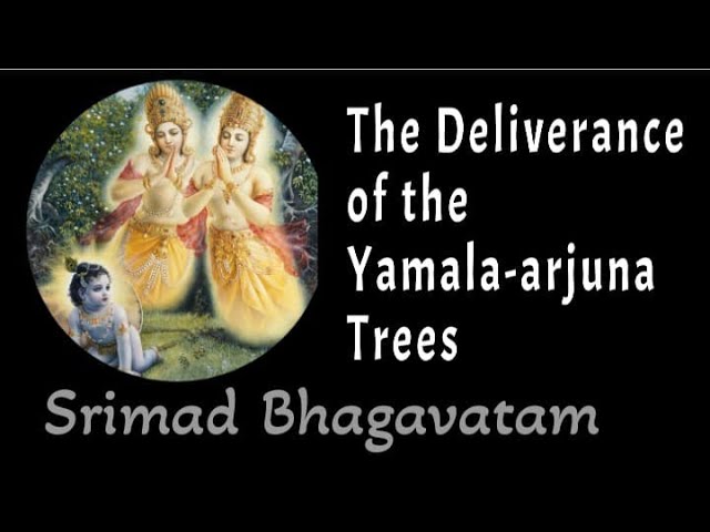 Śukadeva Gosvāmī continued: Having thus spoken, the great saint Devarṣi Nārada re turned to his āśrama, known as Nārāyaṇa āśrama, and Nalakūvara and Maṇigrīva became twin arjuna trees. (23) The Supreme Personal ity of Godhead, Śrī Kṛṣṇa, to fulfill the truth fulness of the words of the greatest devotee, Nārada, slowly went to that spot where the twin arjuna trees were standing. (24) “Although these two young men are the sons of the very rich Kuvera and I have nothing to do with them, Devarṣi Nārada is My very dear and affectionate devotee, and therefore because he wanted Me to come face to face with them, I must do so for their deliverance.” (25) Having thus spoken, Kṛṣṇa soon entered between the two arjuna trees, and thus the big mortar to which He was bound turned crosswise and stuck between them. (26)