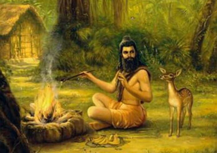 ŚrīŚukadeva Gosvāmī continued: My dear King, one day, after finishing his morning dutiesevacuating, urinating and bathing Mahārāja Bharata sat down on the bank of the river Gaṇḍakī for a few minutes and began chanting his mantra, beginning with oṁkāra.(1)
