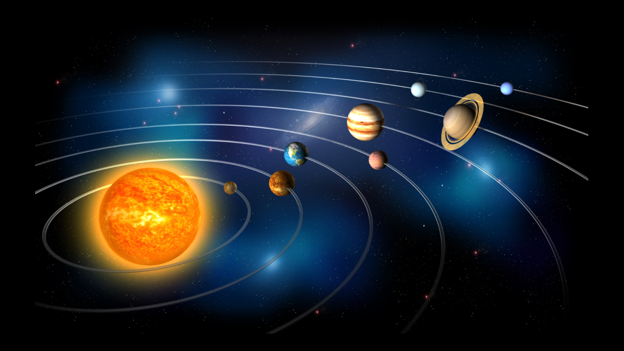 The Sūrya-siddhānta treats the earth as a globe fixed in space, and it describes the seven traditional planets (the sun, the moon, Mars, Mercury, Jupiter, Venus, and Saturn) as moving in orbits around the earth. It also describes the orbit of the planet Rāhu, but it makes no mention of Uranus, Neptune, and Pluto. The main function of the Sūrya-siddhānta is to provide rules allowing us to calculate the positions of these planets at any given time. Given a particular date, expressed in days, hours, and minutes since the beginning of Kali-yuga, one can use these rules to compute the direction in the sky in which each of the seven planets will be found at that time. All of the other calculations described above are based on these fundamental rules.