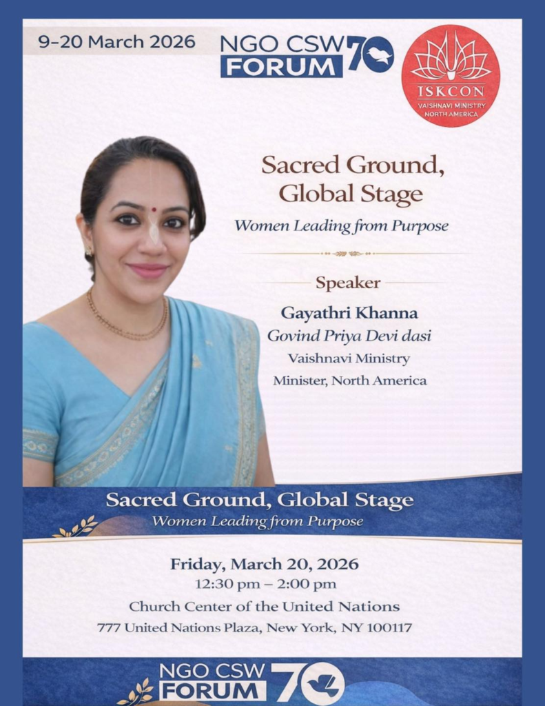 The participation of the Vaishnavi Ministry at UN CSW70 represents a meaningful bridge between spiritual tradition and global dialogue.