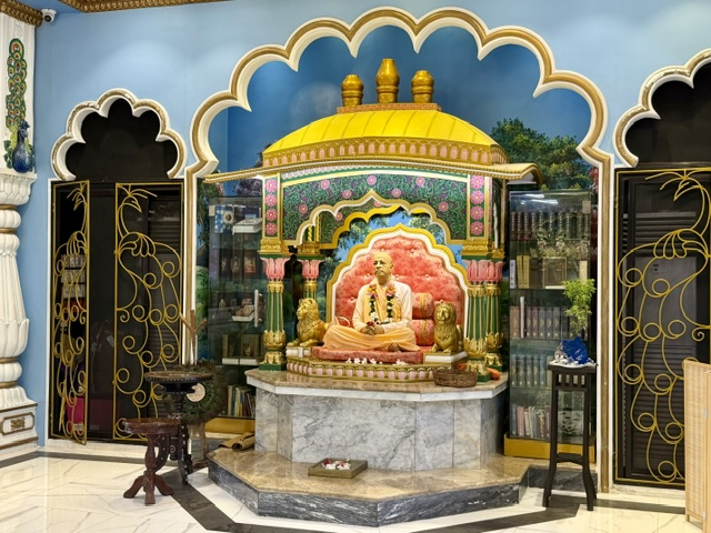 The landscaped grounds surrounding the temple are serene and thoughtfully designed. Such environments are not merely decorative; they support a mode of life aligned with sattva (clarity and harmony), which is essential for spiritual growth. Cleanliness, order, and natural beauty reflect inner discipline and reverence.