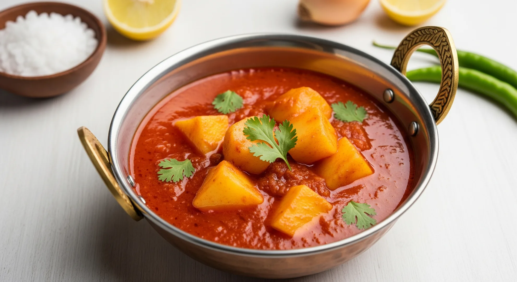 3) cumin seeds, desi ghee(cow’s ghee), sedha namak, fresh coriander leaves, and green chilli.